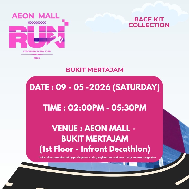Aeon Mall Fun Run 2026 - Bukit Mertajam registration is now open and will close when all of the slots are filled.
