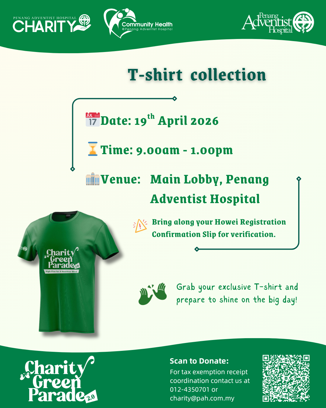 Penang Adventist Hospital proudly presents Charity Green Parade 2.0, a vibrant community walk dedicated to mental health and wellbeing. More than just a 4KM walk, this fundraising initiative seeks to raise much-needed funds for underserved patients under the Dr. J. Earl Gardner Fund, while encouraging open conversations around mental health and the importance of staying active for a healthier mind.